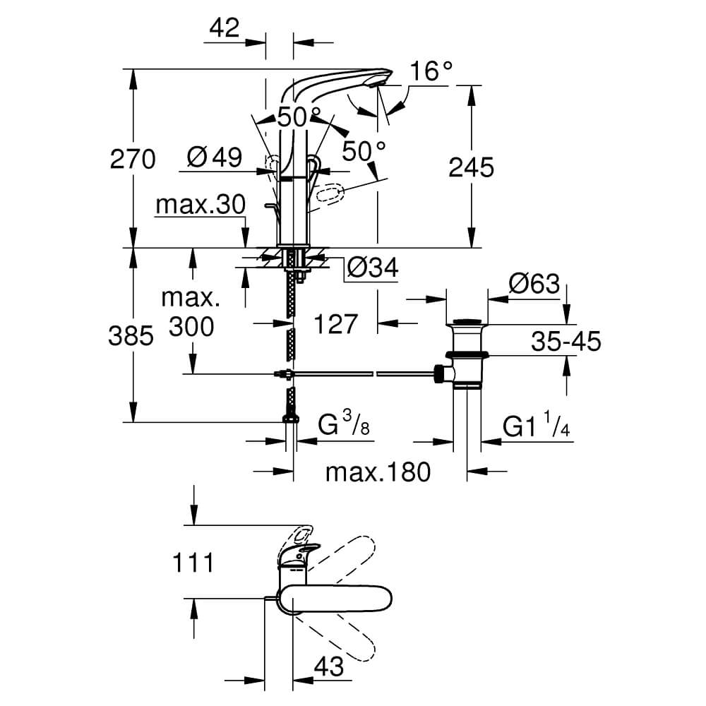 Grohe Eurostyle L-Size Chrome Tall Basin Mixer Tap with Swivel Spout and Pop-Up Waste