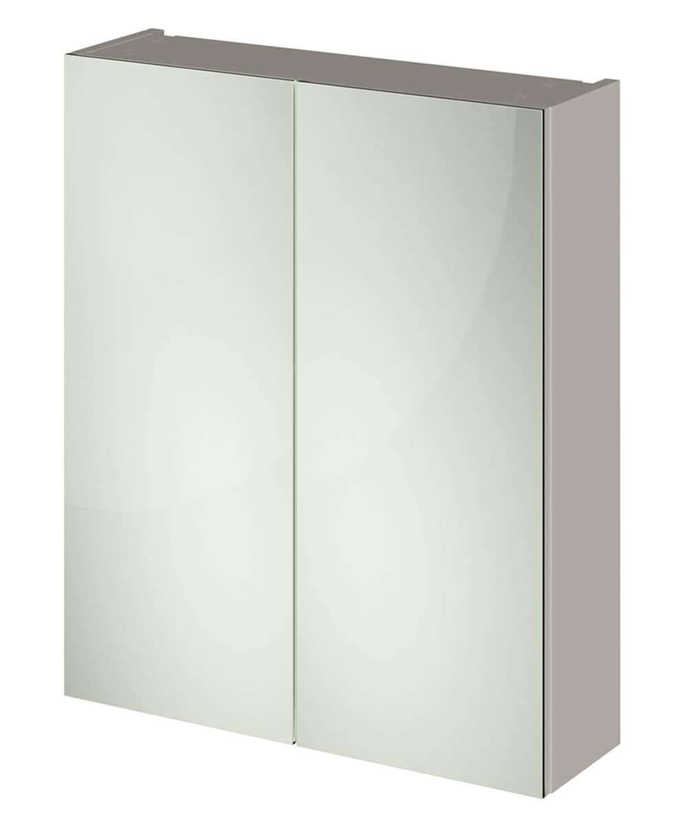 The unit is MDF Painted Gloss. There are 2 shelves in the unit.