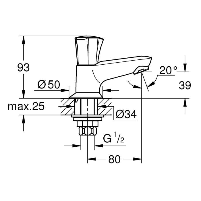 Grohe Costa-L Deck Mounted Chrome Basin Pillar Tap