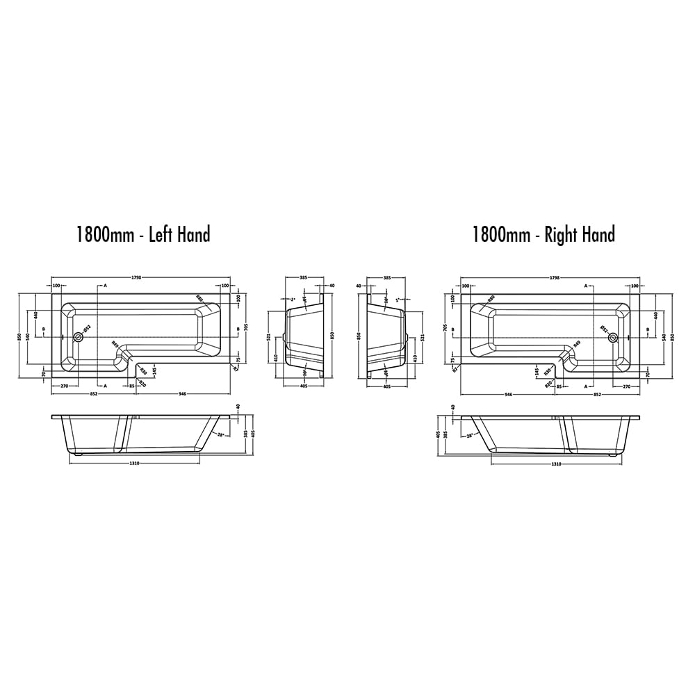 Download Technical Data Sheet For 1800mm Shower Bath PDF