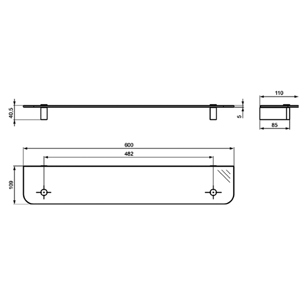Please Note: Concealed fixing to the wall. Screw fixing kits provided.