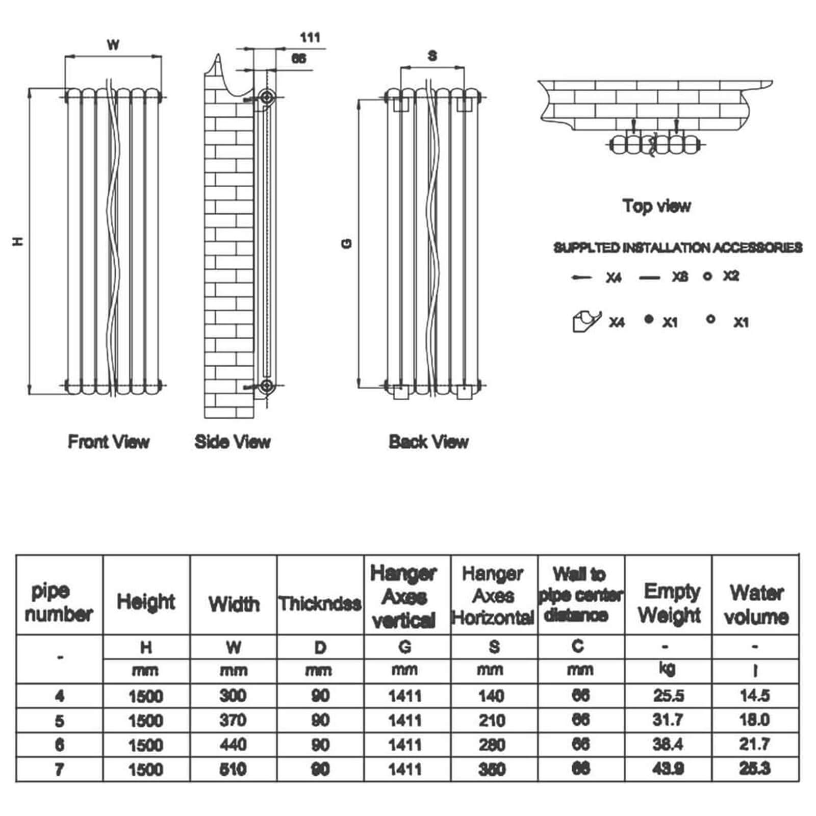 Reina Coneva Vertical Mild Steel Designer Radiator 1500mm High