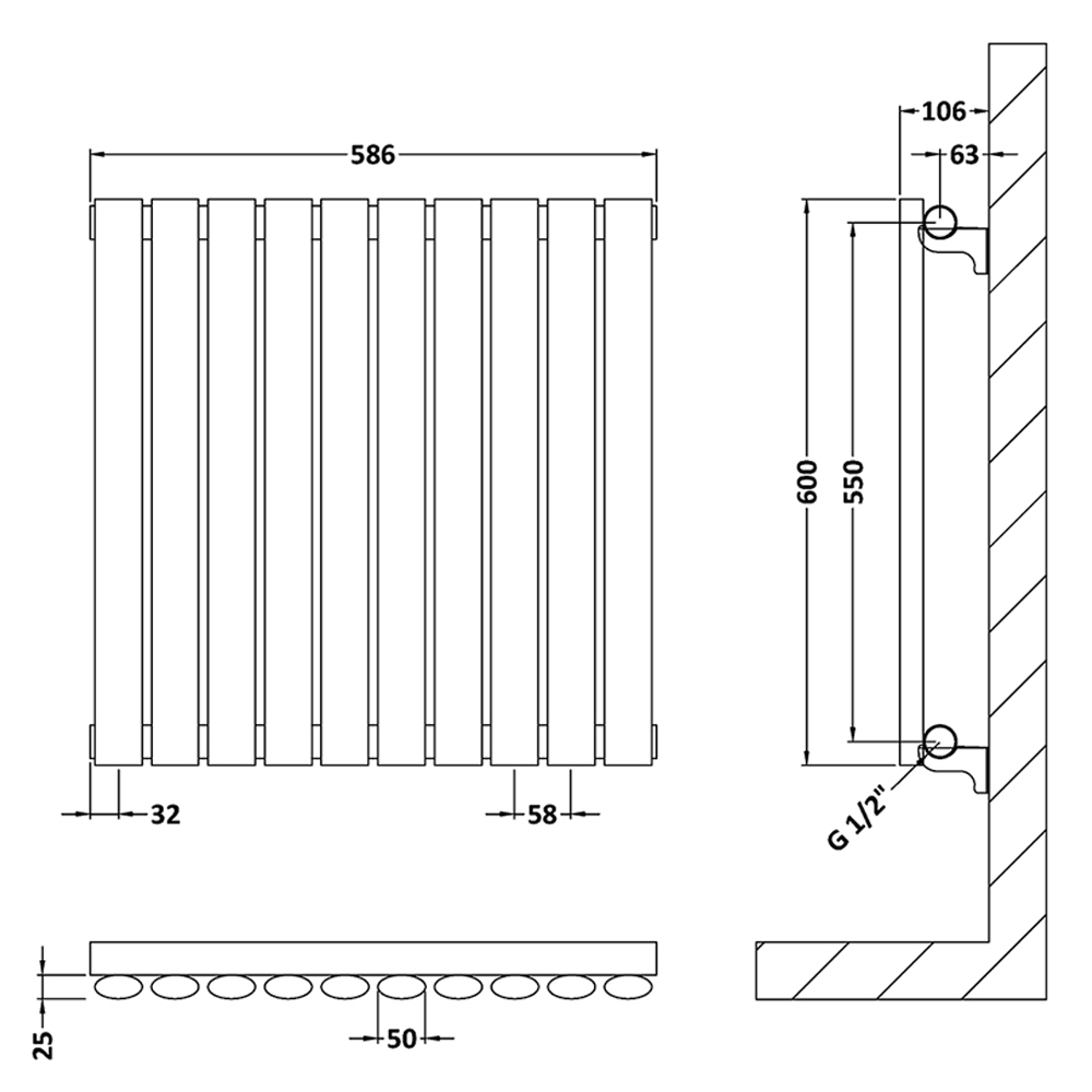 • Note: It is recommends that the pipework should not be done until the heated towel rail is receipt. After installing any new radiators, when refilling the system, it is recommended that a suitable inhibitor is used. Dimensions are subject to minor deviations.