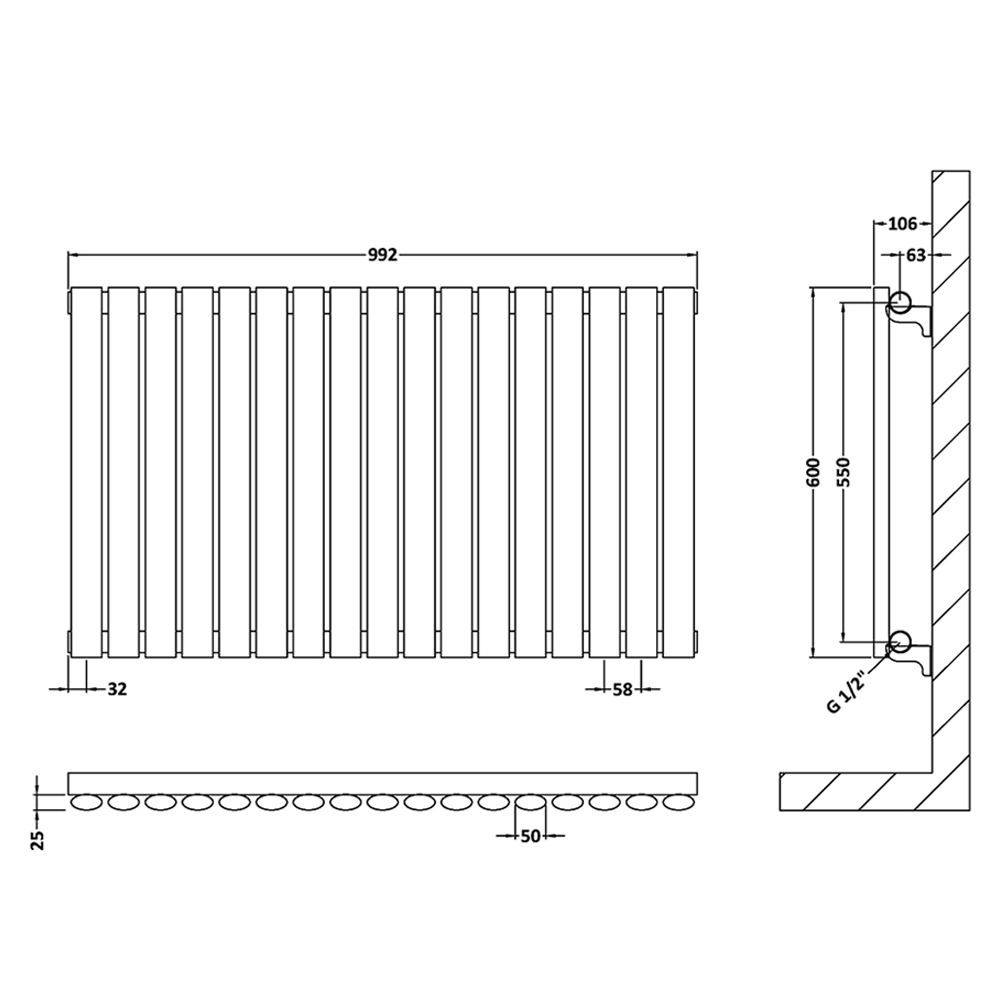 Hudson Reed Revive Single Panel Horizontal Radiator 600mm High