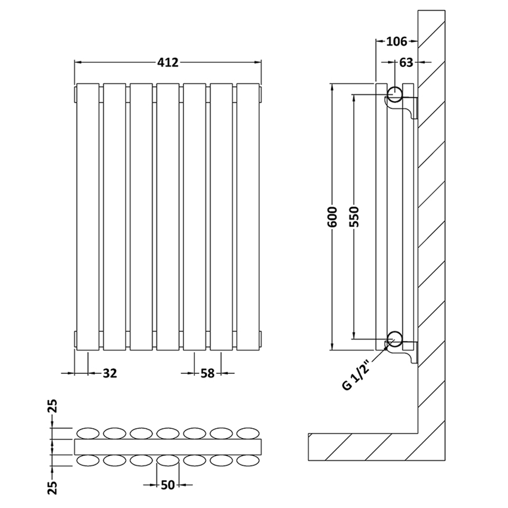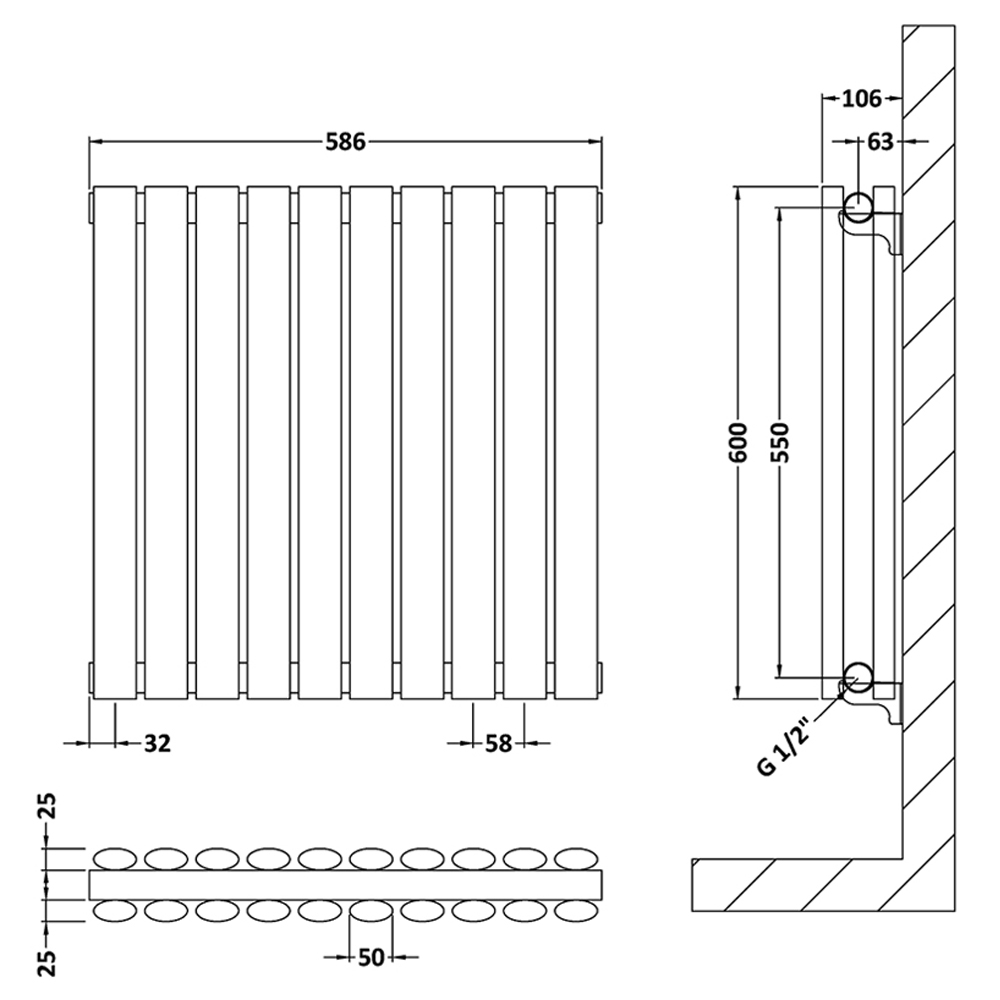 • Note: It is recommends that the pipework should not be done until the heated towel rail is receipt. After installing any new radiators, when refilling the system, it is recommended that a suitable inhibitor is used. Dimensions are subject to minor deviations.