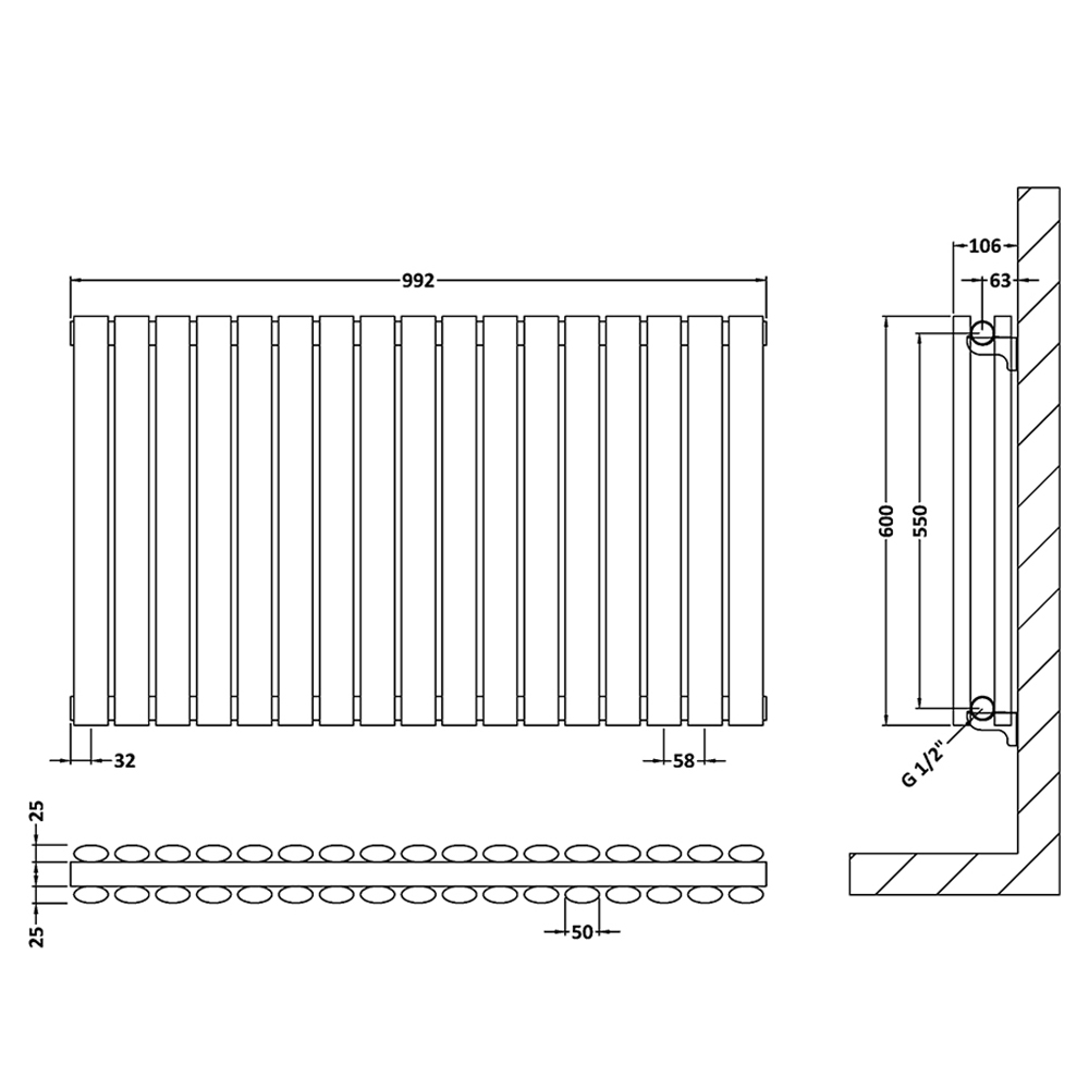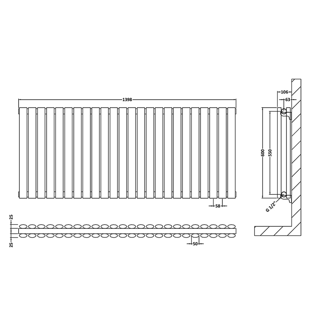 Hudson Reed Revive Double Panel Horizontal Radiator 600mm High