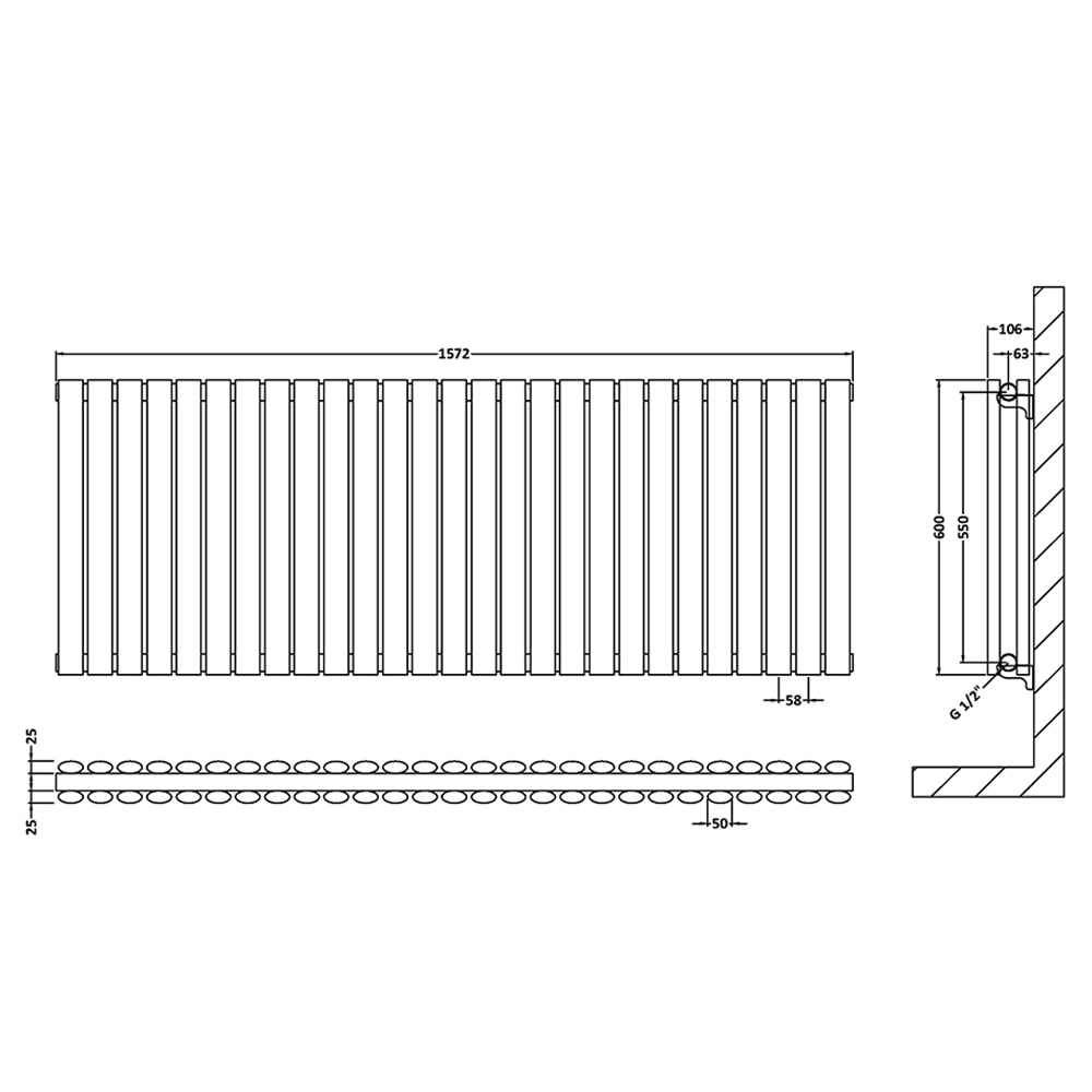 • Radiator widths - 412mm (412cm), 586mm (58.6cm), 992mm (99.2cm), 1398mm (139.8cm) and 1572mm (157.2cm)
