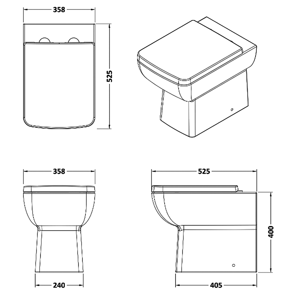 Nuie Cleo 358 x 525mm Square Back-To-Wall WC Pan White.