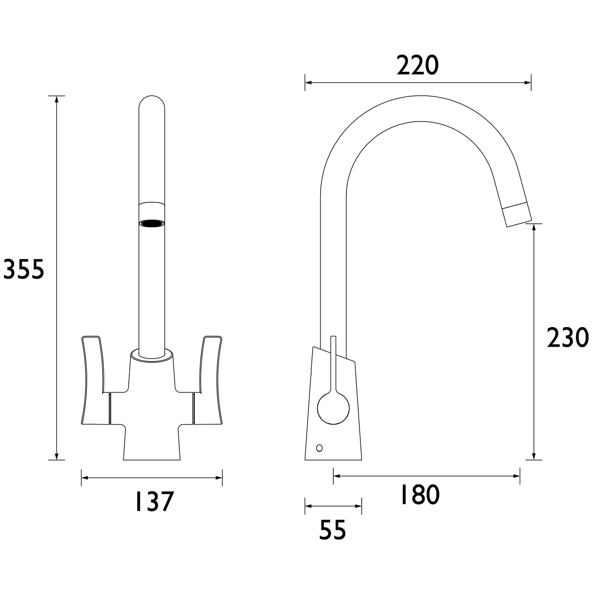 • Base to Spout: 230mm [23cm]