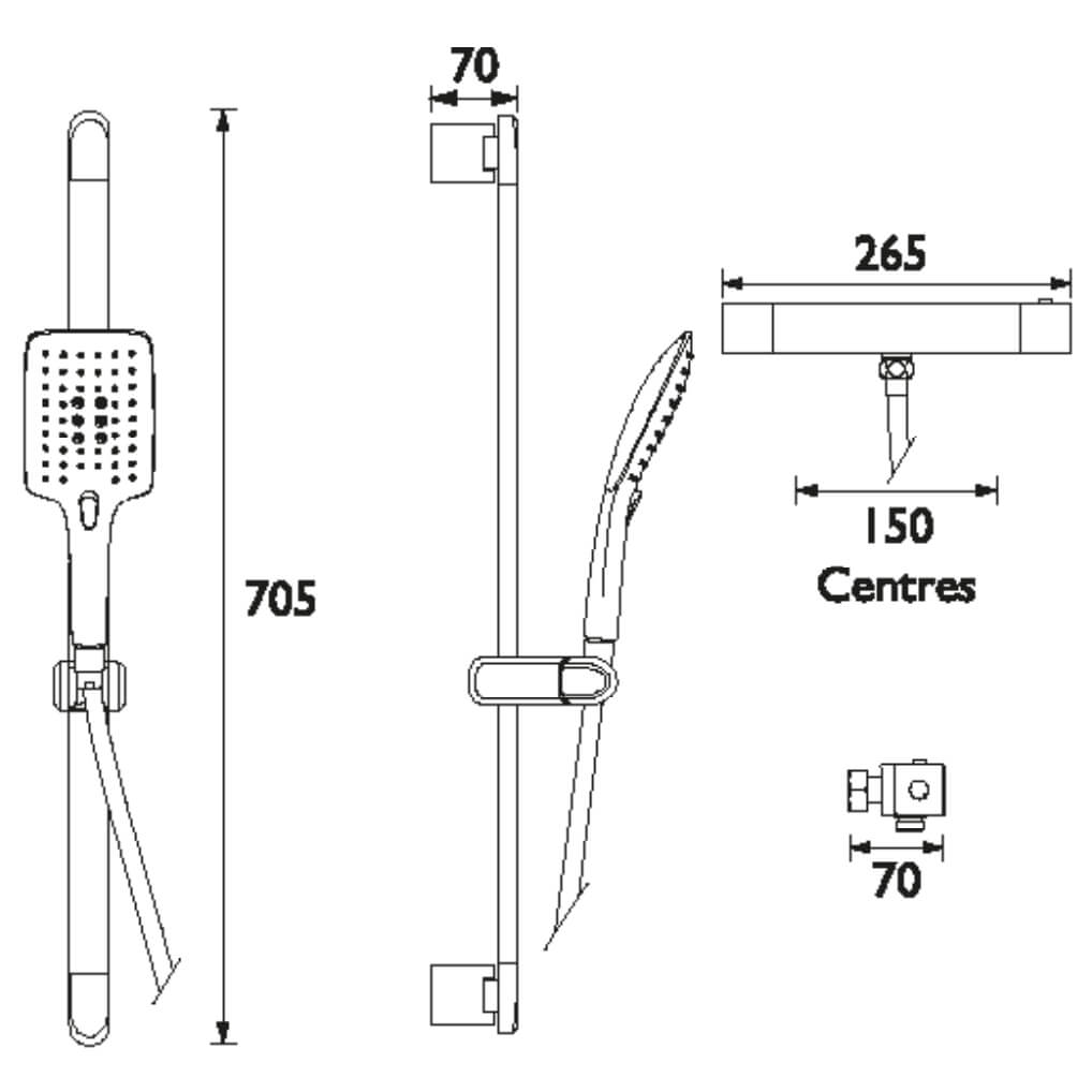 Bristan Qubo Chrome Exposed Thermostatic Bar Shower with Handset and Kit