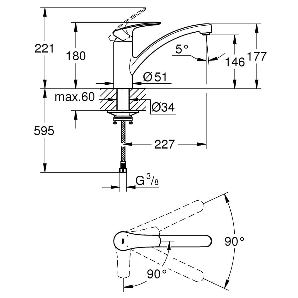 Grohe Eurosmart Chrome Deck Mounted Single Lever Kitchen Sink Mixer Tap