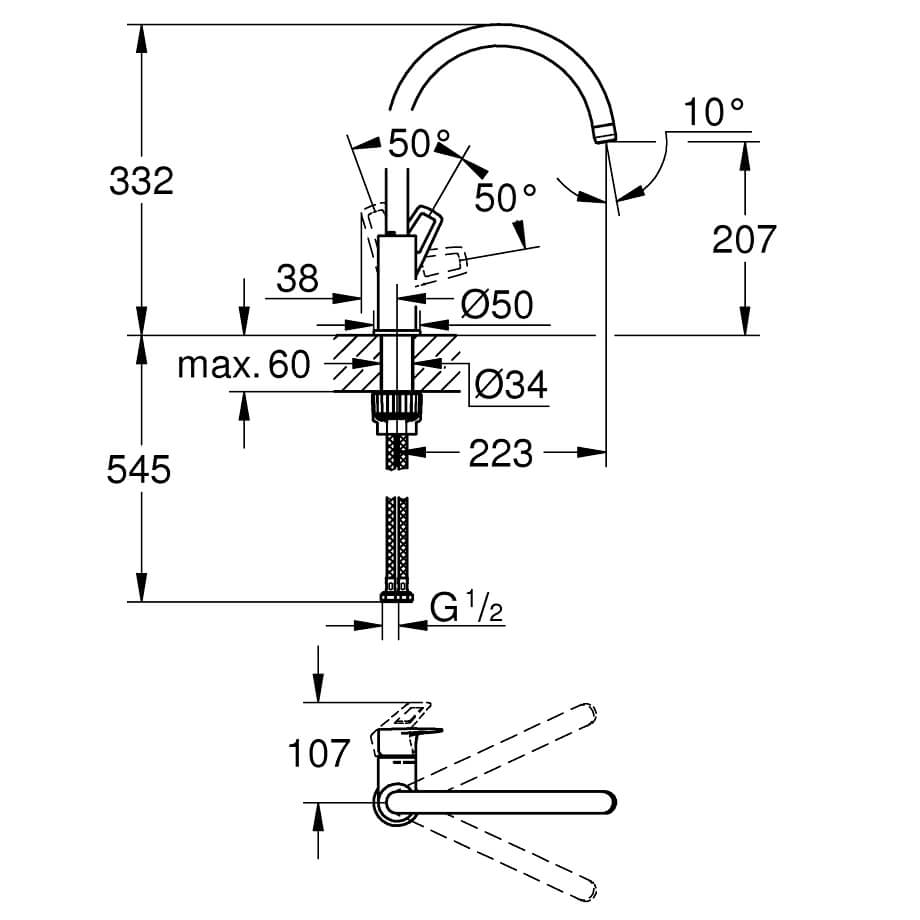 Grohe BauLoop Single Lever Chrome Kitchen Sink Mixer Tap with Swivel Spout