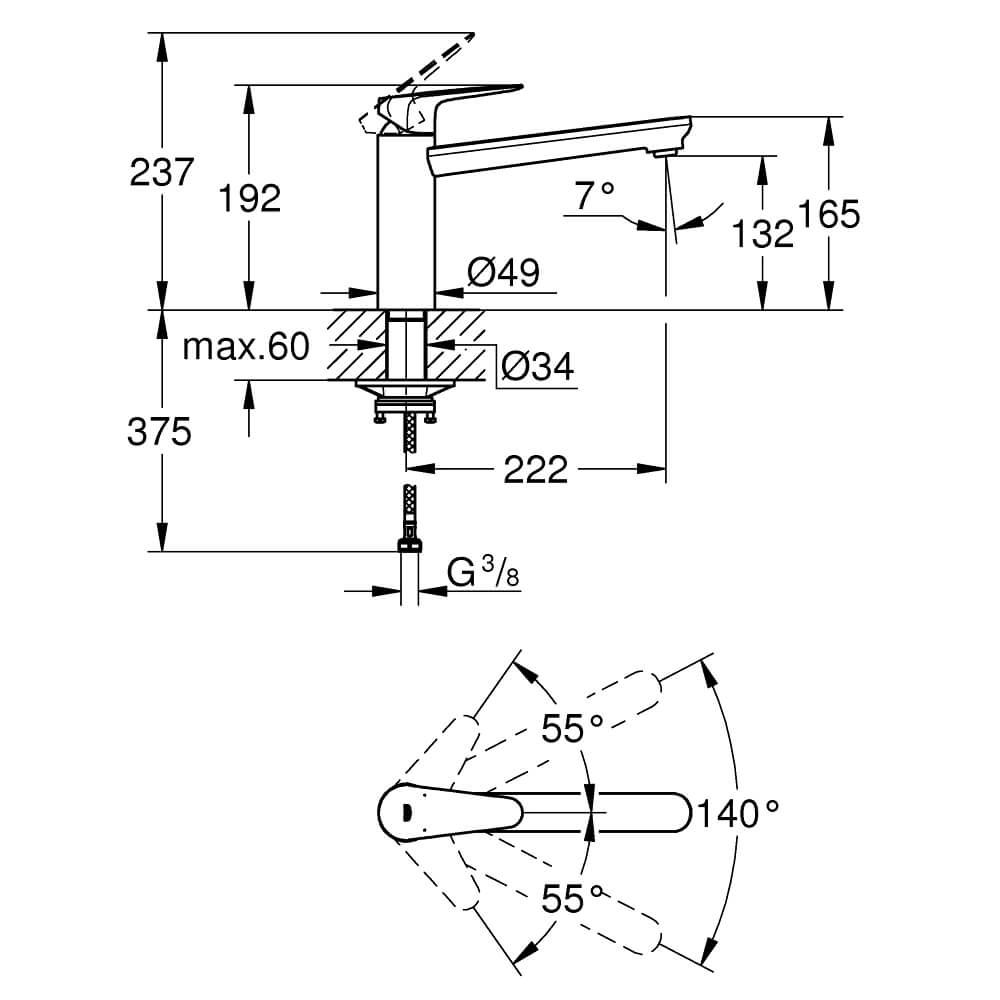 Grohe BauCurve Chrome Deck Mounted Single Lever Kitchen Sink Mixer Tap - Swivel Spout