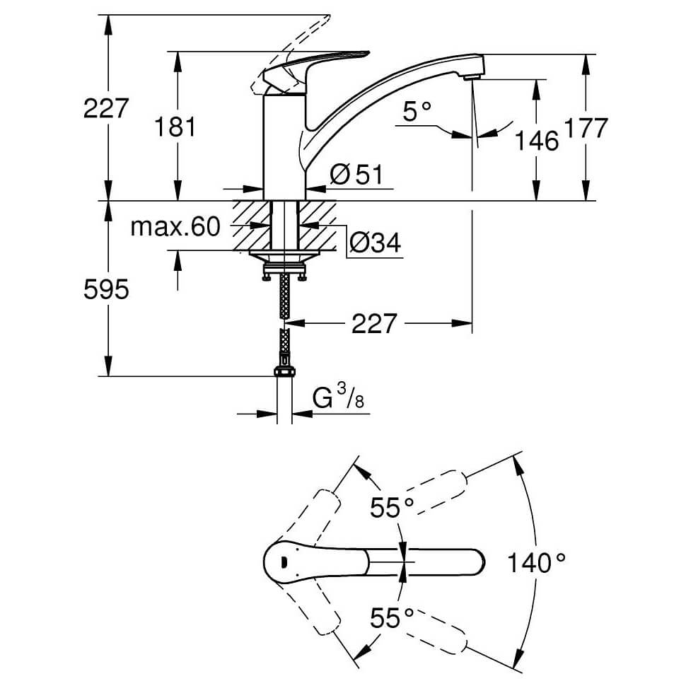Grohe Eurosmart Deck Mounted Chrome Kitchen Sink Mixer Tap With Swivel Spout