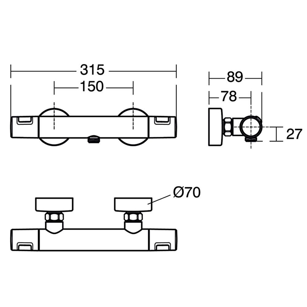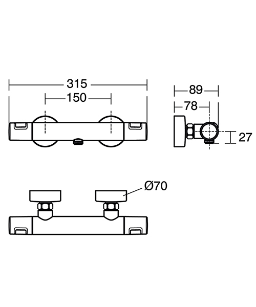 Ideal Standard Ceratherm T25 Thermostatic Exposed Chrome Shower Mixer Valve.