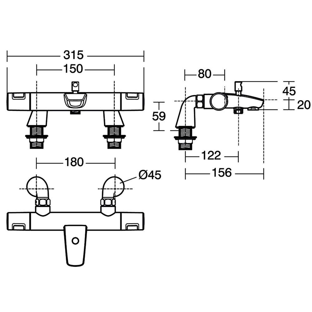 Ideal Standard Ceratherm T25 Thermostatic Exposed Chrome Bath Shower Mixer Tap.