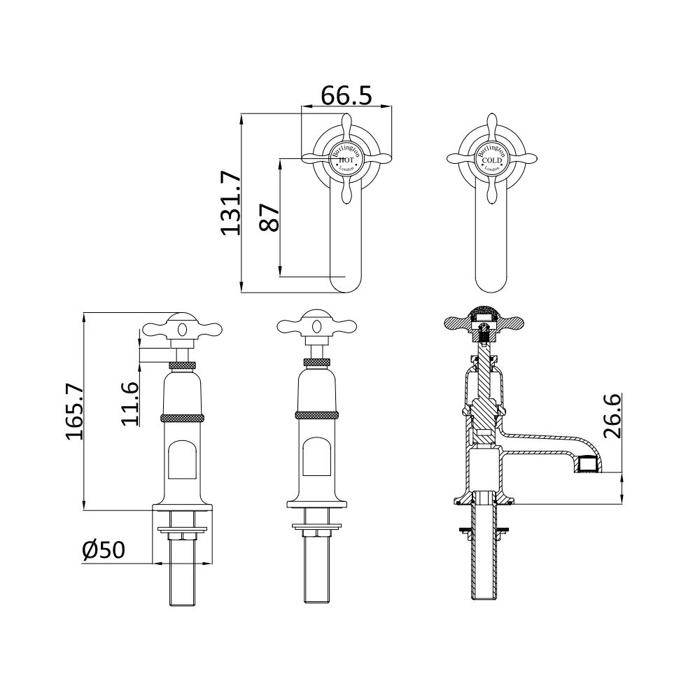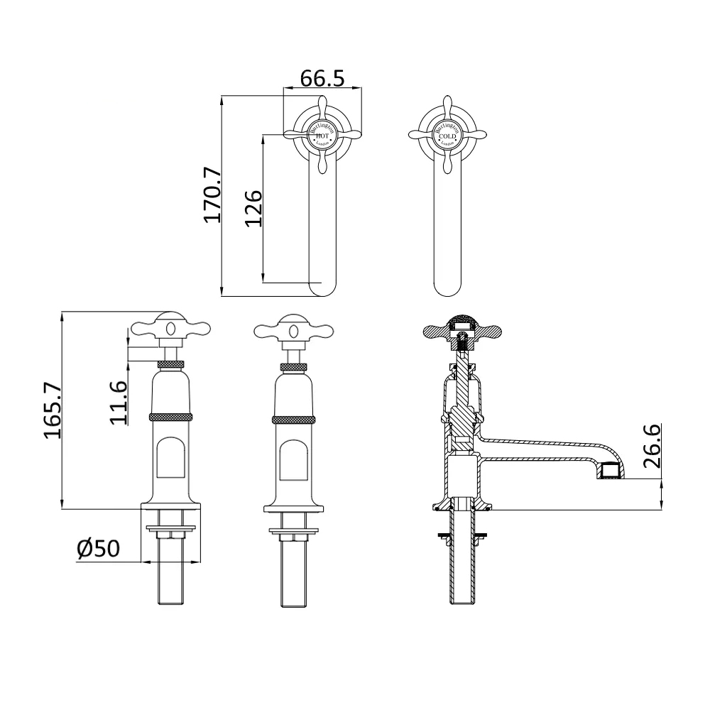 • Base to spout: 26.6mm (2.66cm)