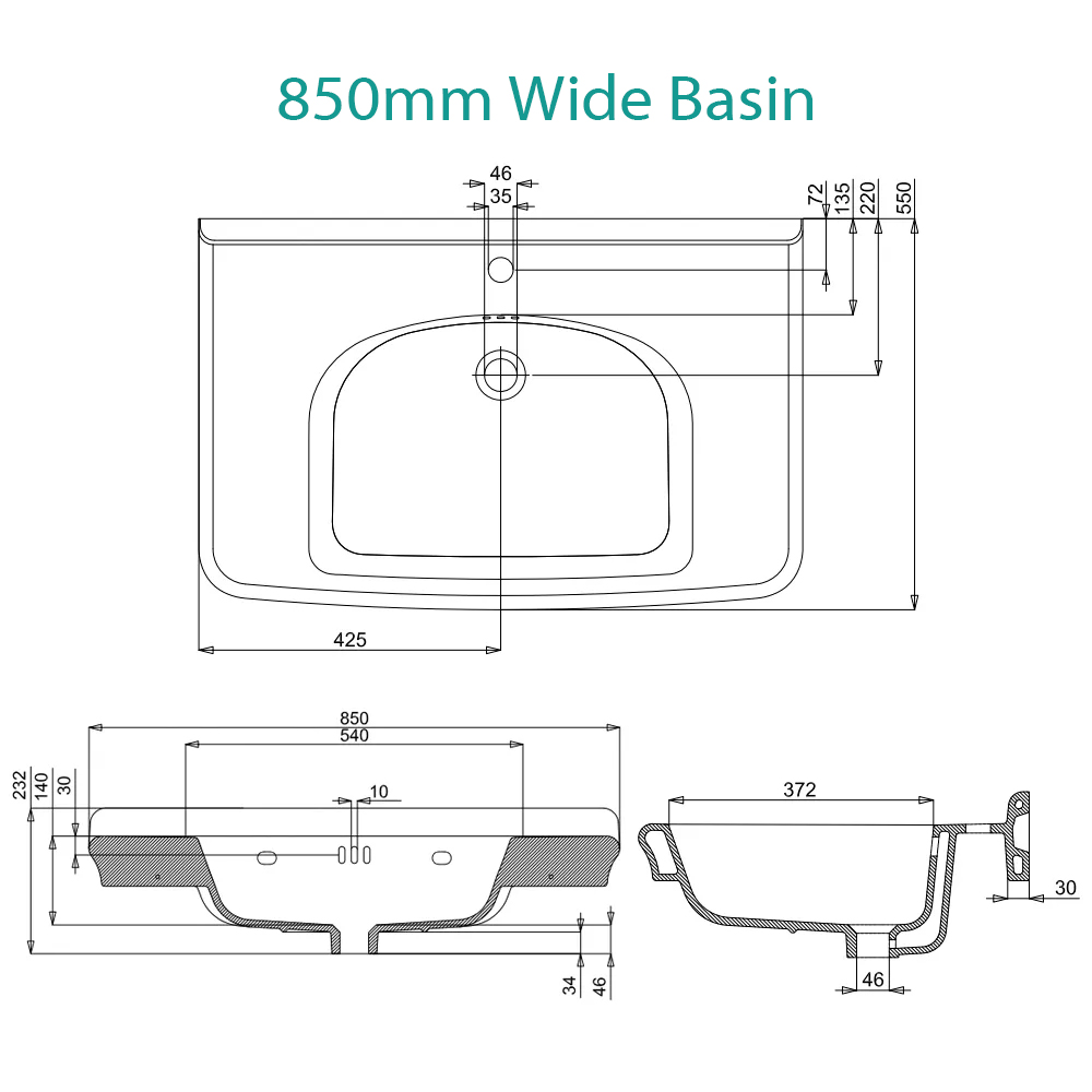• Size of Basin: 850 x 550 x 232mm [Width x Depth x Height]